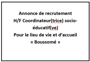 BOUSSOMÉ est un lieu de vie et d’accueil (LDVA) créé par l’association Chacun Sa Route. Son fonctionnement repose sur une présence du personnel éducatif 24h/24h, cela 356jours/365 jours. Il sert de lieu d’accueil permanent de six jeunes (12-21 ans) qui sont confiés à notre association dans le cadre des séjours socio-éducatifs dits séjours de rupture. Les jeunes accueillis arrivent de la France. Ils sont confrontés à des difficultés sociales et familiales complexes.